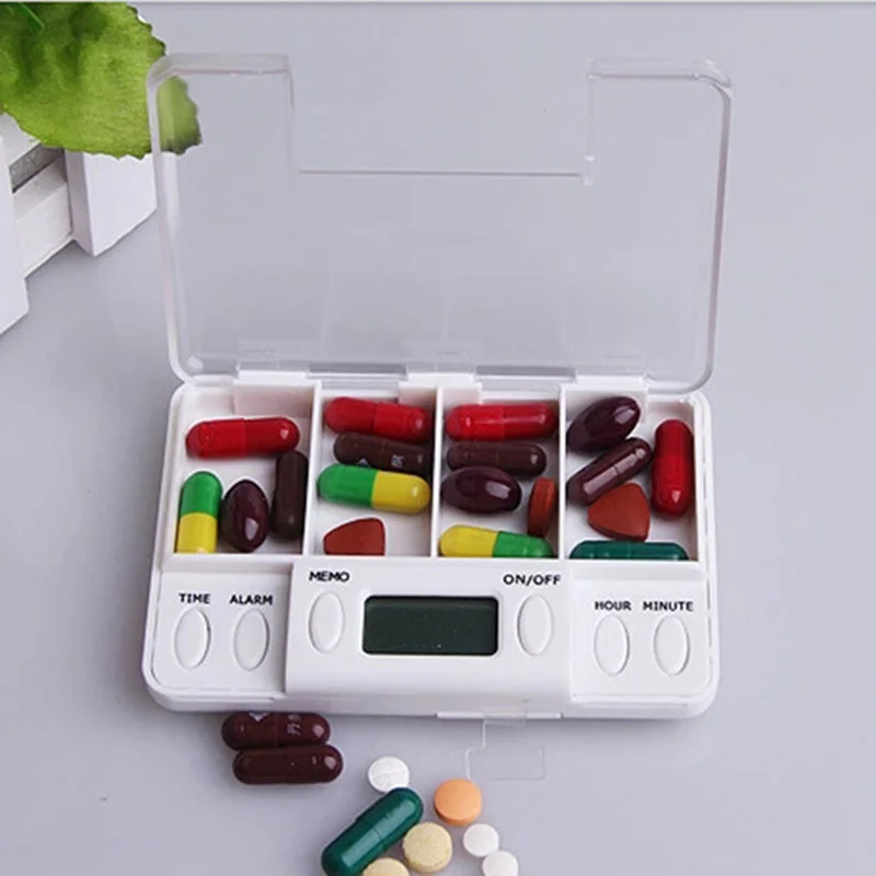 4 Grid Intelligent Plastic Storage Box Electronic Timing Reminder Medicine Boxes Alarm Timer Pills