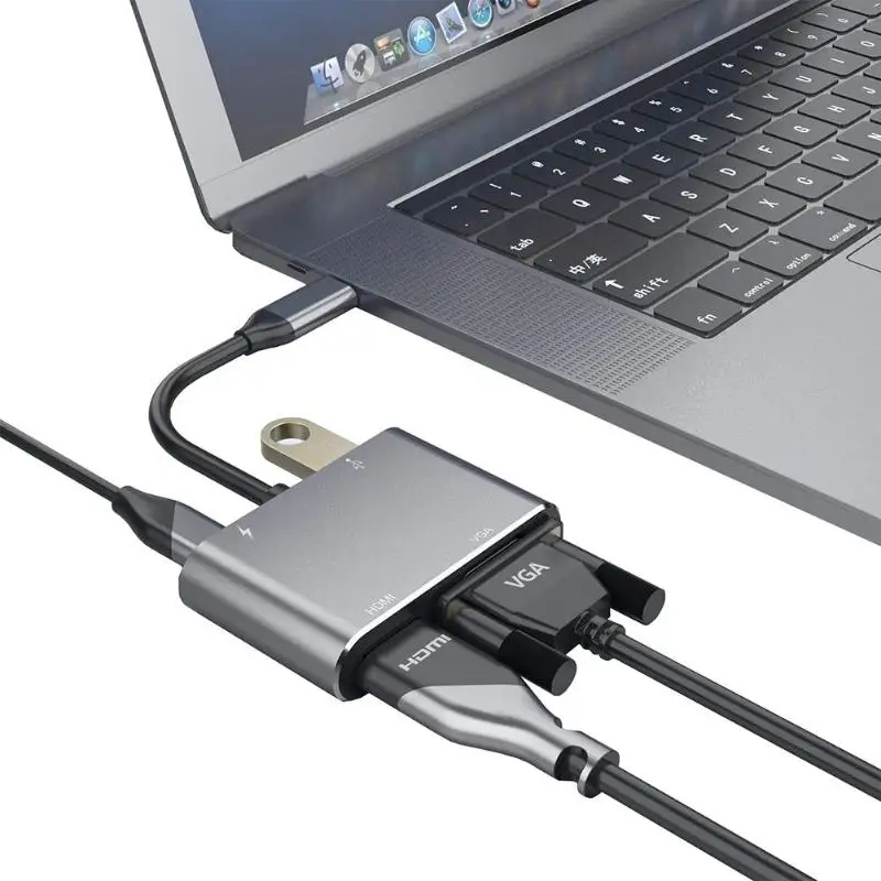 HOT SALE Portable Type-C Converter 4 in 1 USB3.0 USB-C PD 4K HDMI 1080P VGA HUB Adapter Aluminum Alloy Elect