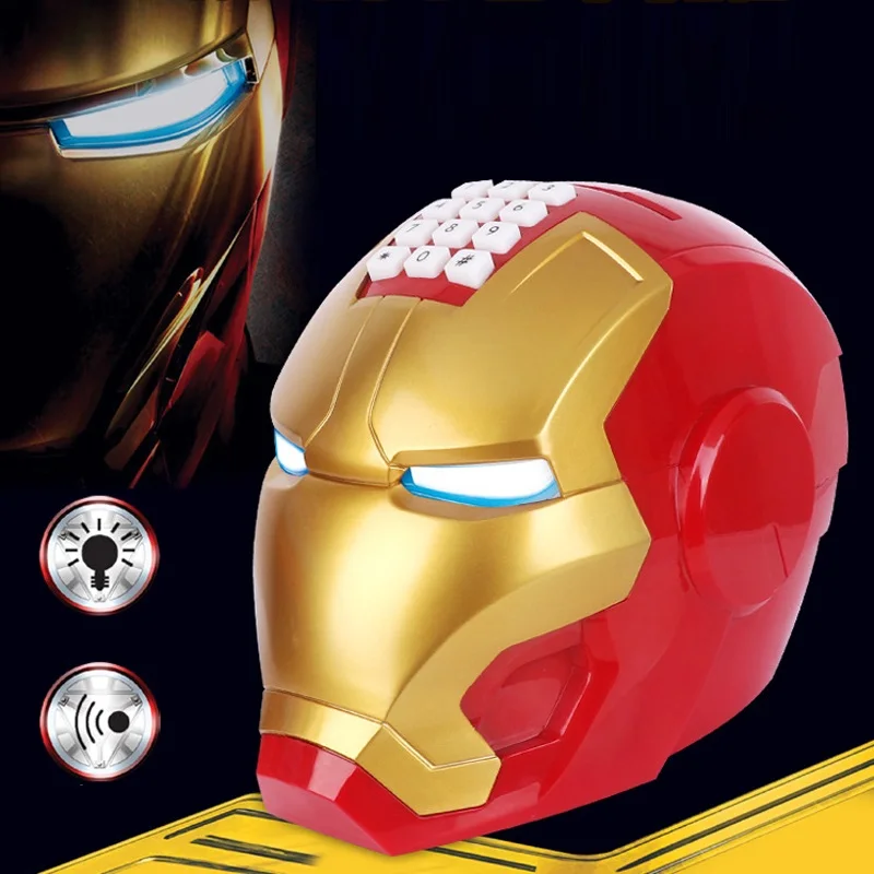 ORIGINAL Electronic Light and Music Iron Man Helmet Password Lock Piggy Bank Action Figures Model Toy Desk D