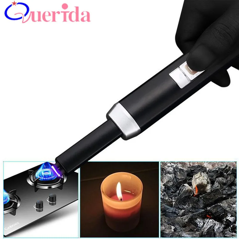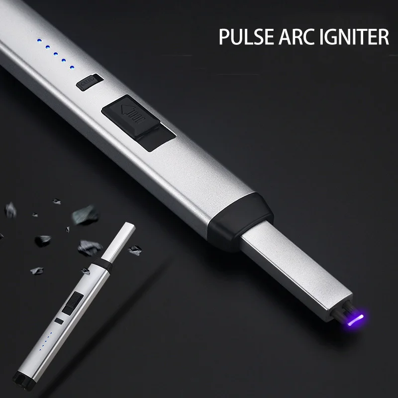 Metal Electronic Rechargeable Cigarette Lighter Windproof USB Pulse Arc Lgnition Outdoor Camping Po